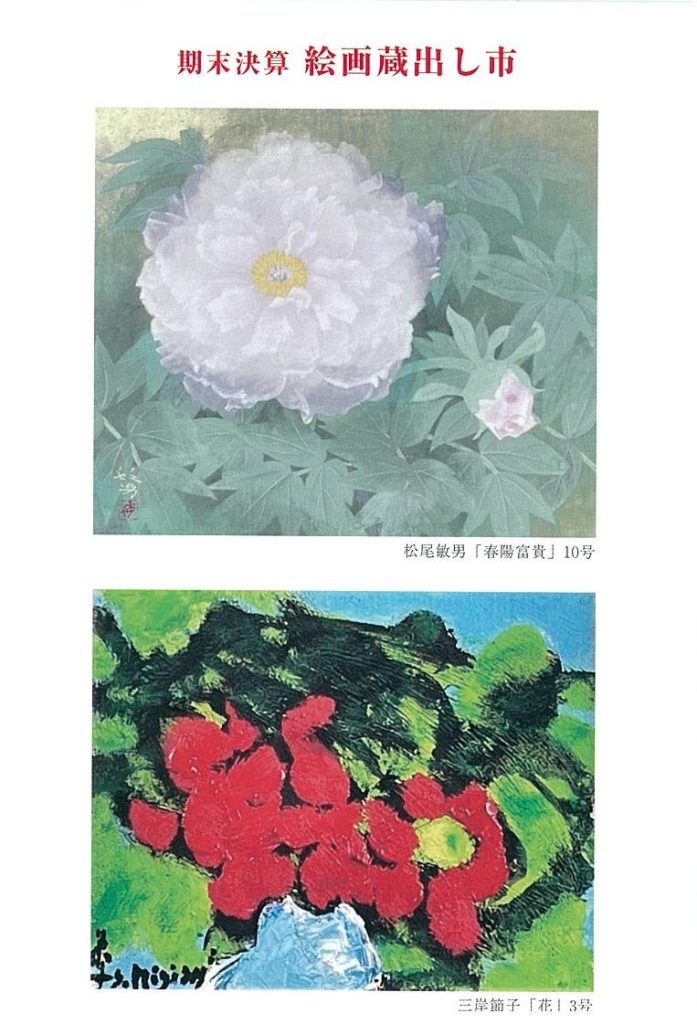 日頃のご愛顧に感謝を込め、期末決算を機に「絵画蔵出し市」を開催いたします。日本画・油彩画・版画の物故巨匠から俊英作家まで多彩に取り揃え、お求めやすい特別価格にて展示即売いたします。