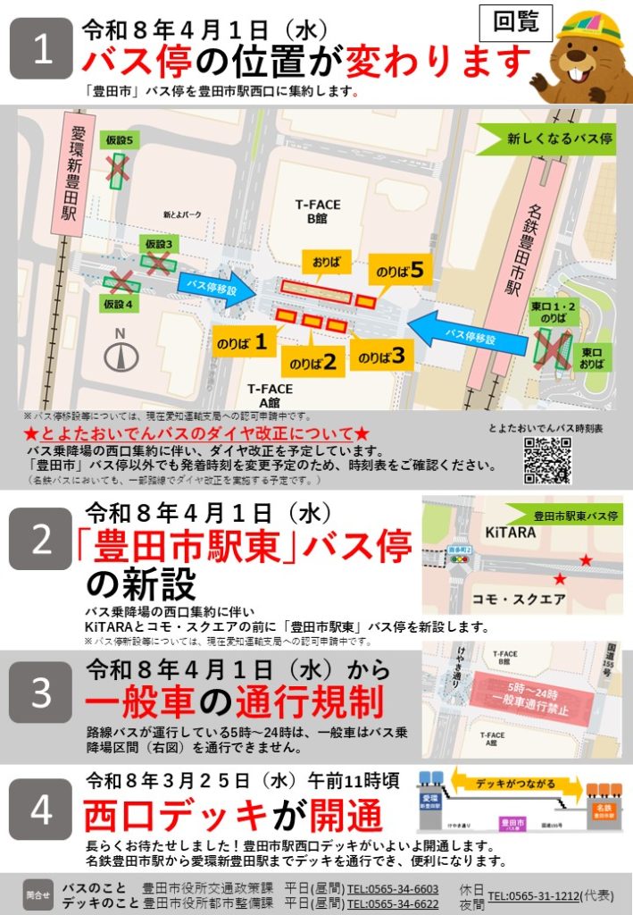 豊田市駅西口、豊田市駅東のバス停および交通規制等のご案内!!