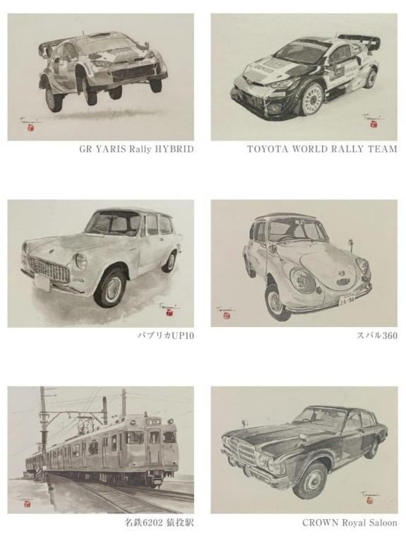 本展では水墨の濃淡でリアルに描かれた名車の数々50点を一堂に展示いたします。