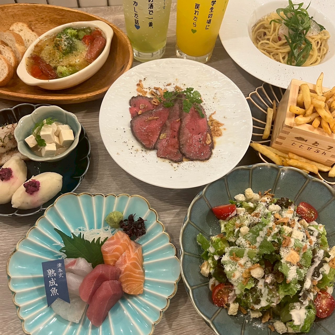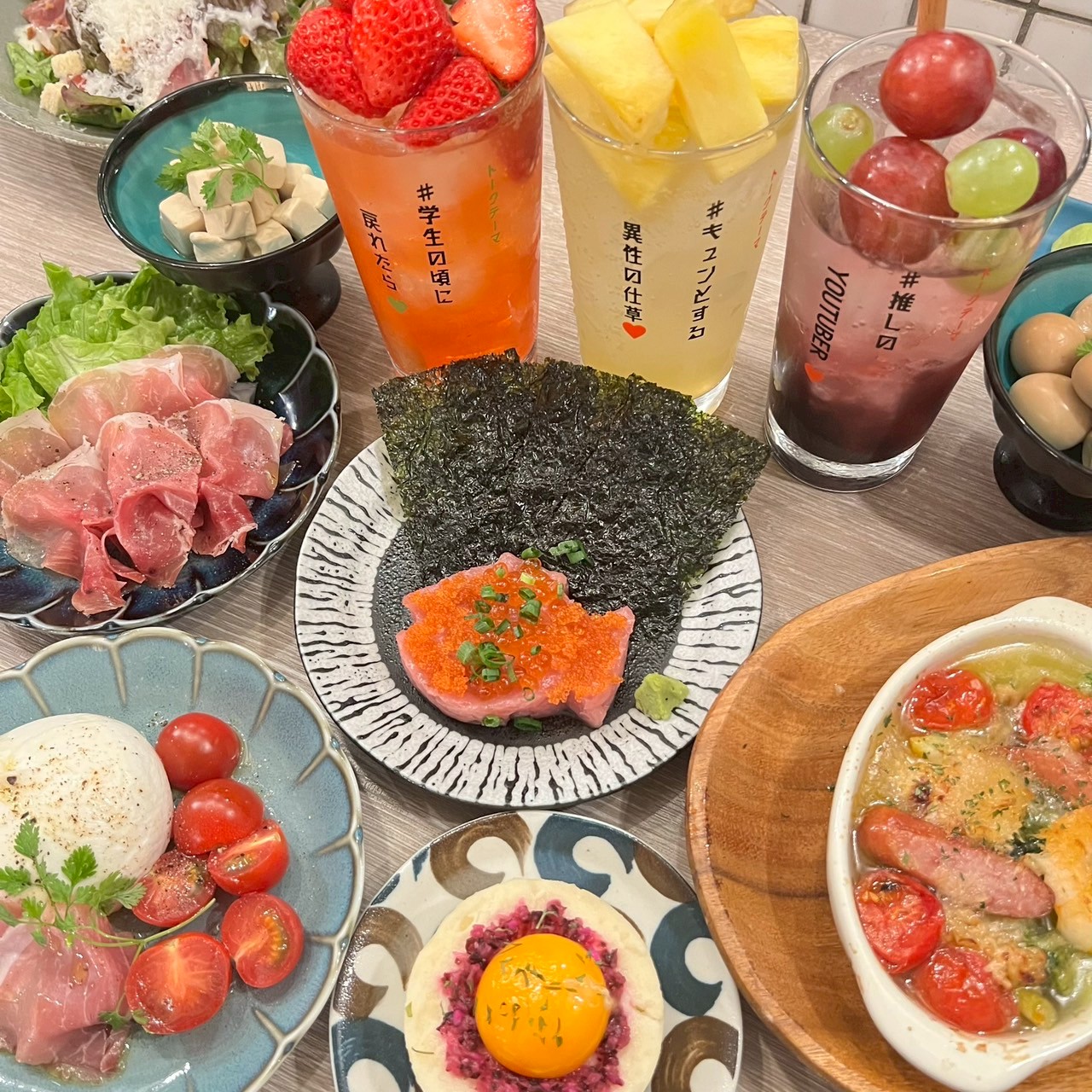 ちょっと変わった寝かせたお魚のお刺身、熟成魚や見た目も可愛い食べるフルーツサワー、手作りのお料理。200種類以上の豊富なドリンクもご用意しております。SNSでも話題の大人気店☆